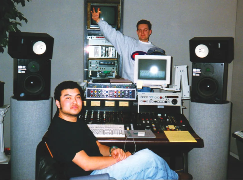 Уилл Шимура (Lyrics Born, тогда Asia Born) и Джошуа Дэвис (DJ Shadow) в студии. Девяностые. Шимура, кстати, это размытый чувак в белом свитере на обложке альбома Шэдоу Endtroducing Георг Палладьев 4.03.2026 фото