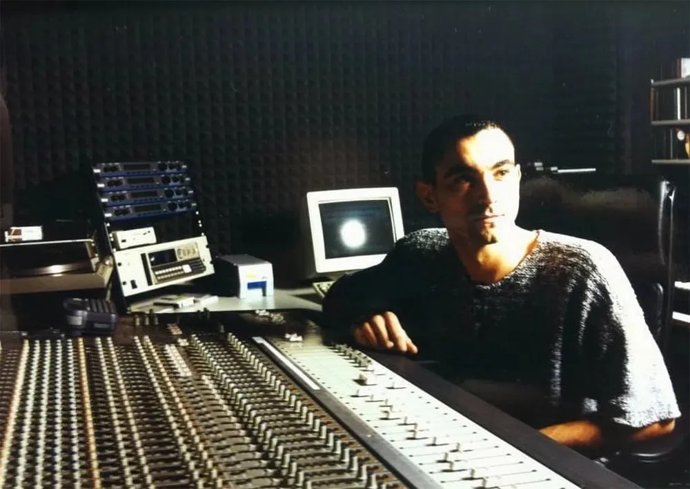 24-летний Роберт Майлз в студии размером 4×4, которую разместил в гараже дома, где жил с тогдашней девушкой